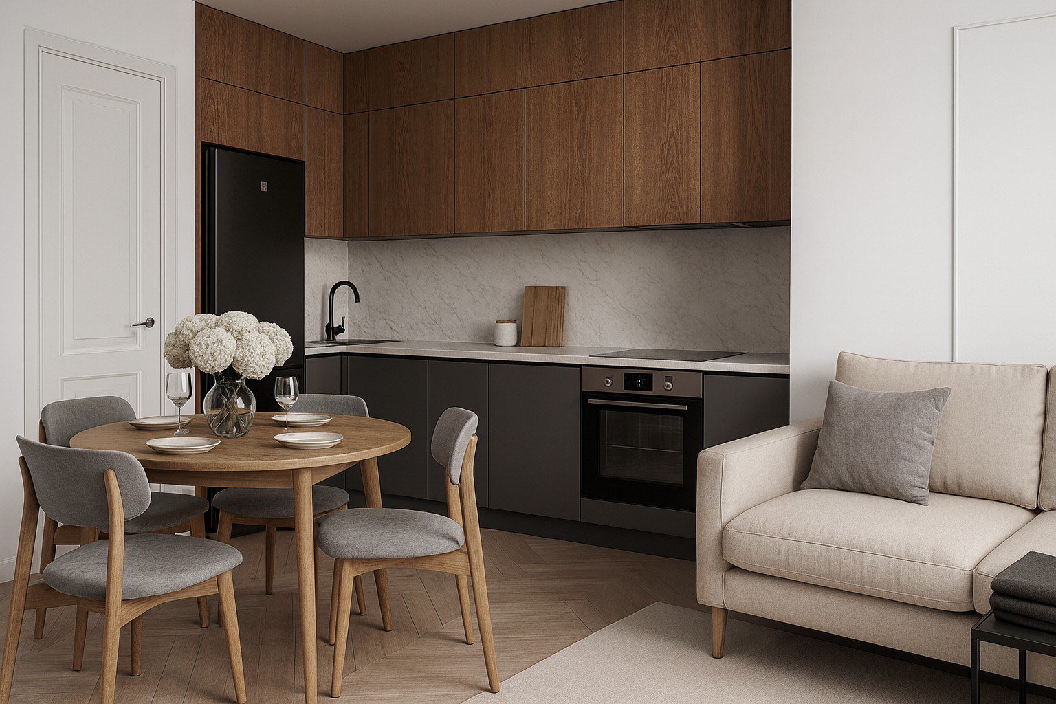 Кухонный гарнитур, мебель и техника для комфортного старта.