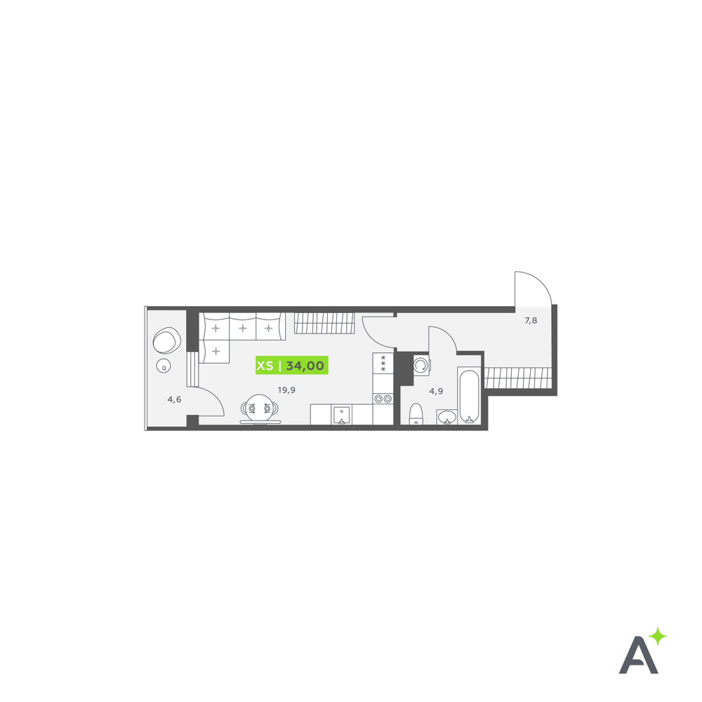 1-комнатная 38.3 м