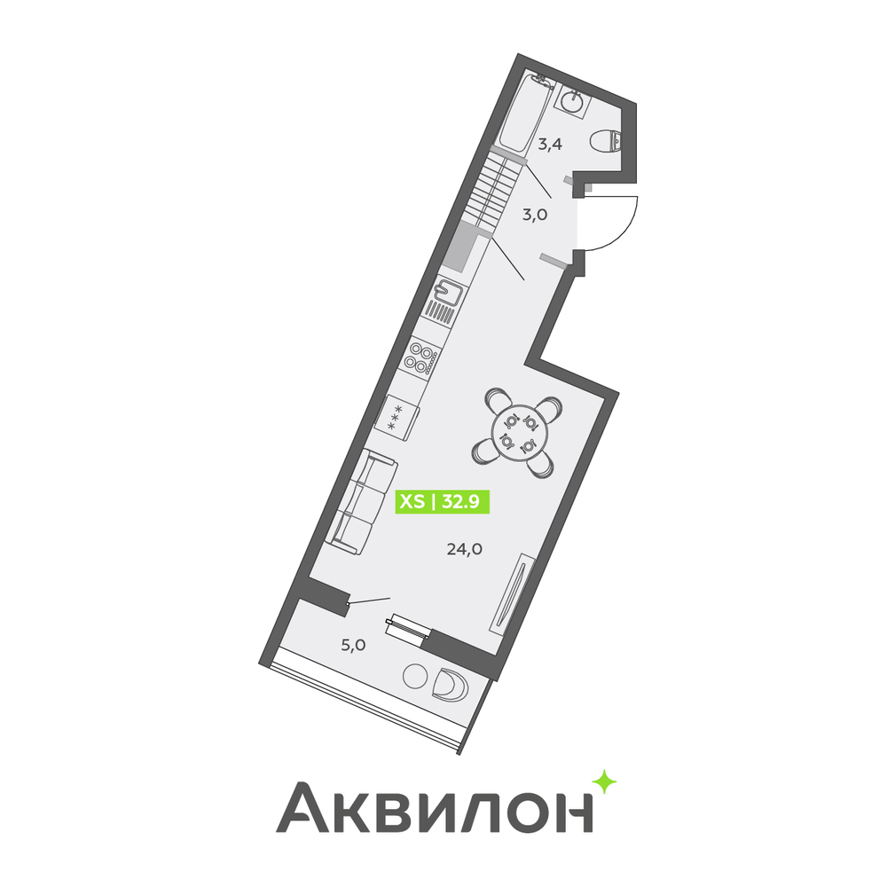 Студия 33 м