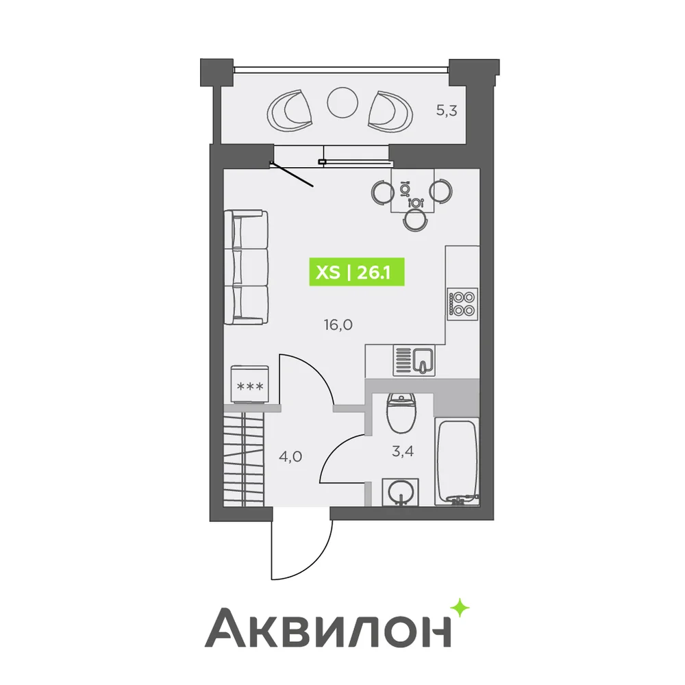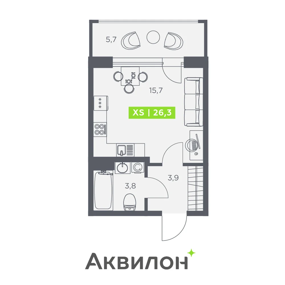 Студия 27.8 м